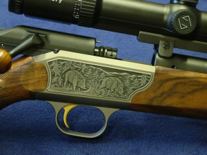 R93 Luxus, Wild Boar & Red Deer – Grade 4A Blaser R93 Luxus grade straight pull rifle action frame with IC Control Bolt assy, fitted with Wild Boar & Red Deer side plates and Gold trigger blade, Grade 4 traditional Hunting stock and XL forearm with BiPod mounting lug. This Stock frame assy can be supplied with any of the Blaser Calibre range in either Std or flutted profile. Magnum calibres at extra cost of £235 Scope & mount available at extra cost.